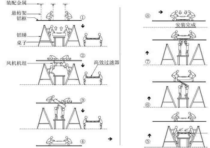 定位:根據設計圖紙,確定FFU的安裝位置,確保FFU的出風方向與潔凈室的設計要求一致。